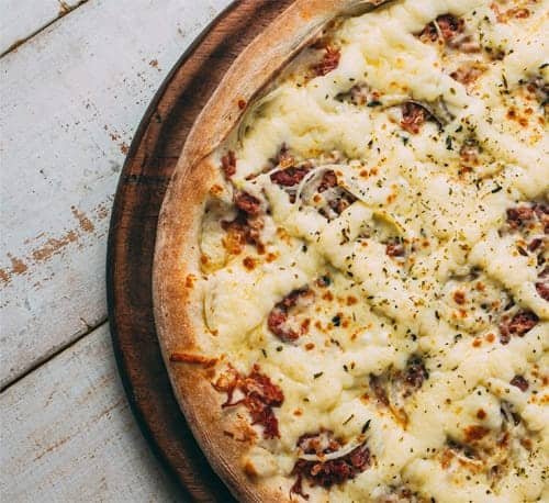 Molho de tomate, muçarela, carne de sol, requeijão, orégano.